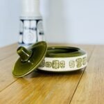 קרמיקה ישראלית כפר מנחם קופסת תכשיטים גובה כללי 14 קוטר 12 מצב מושלם חתומה מתאימה לתכשיטים או סתם לדקורציה שנות ה 60