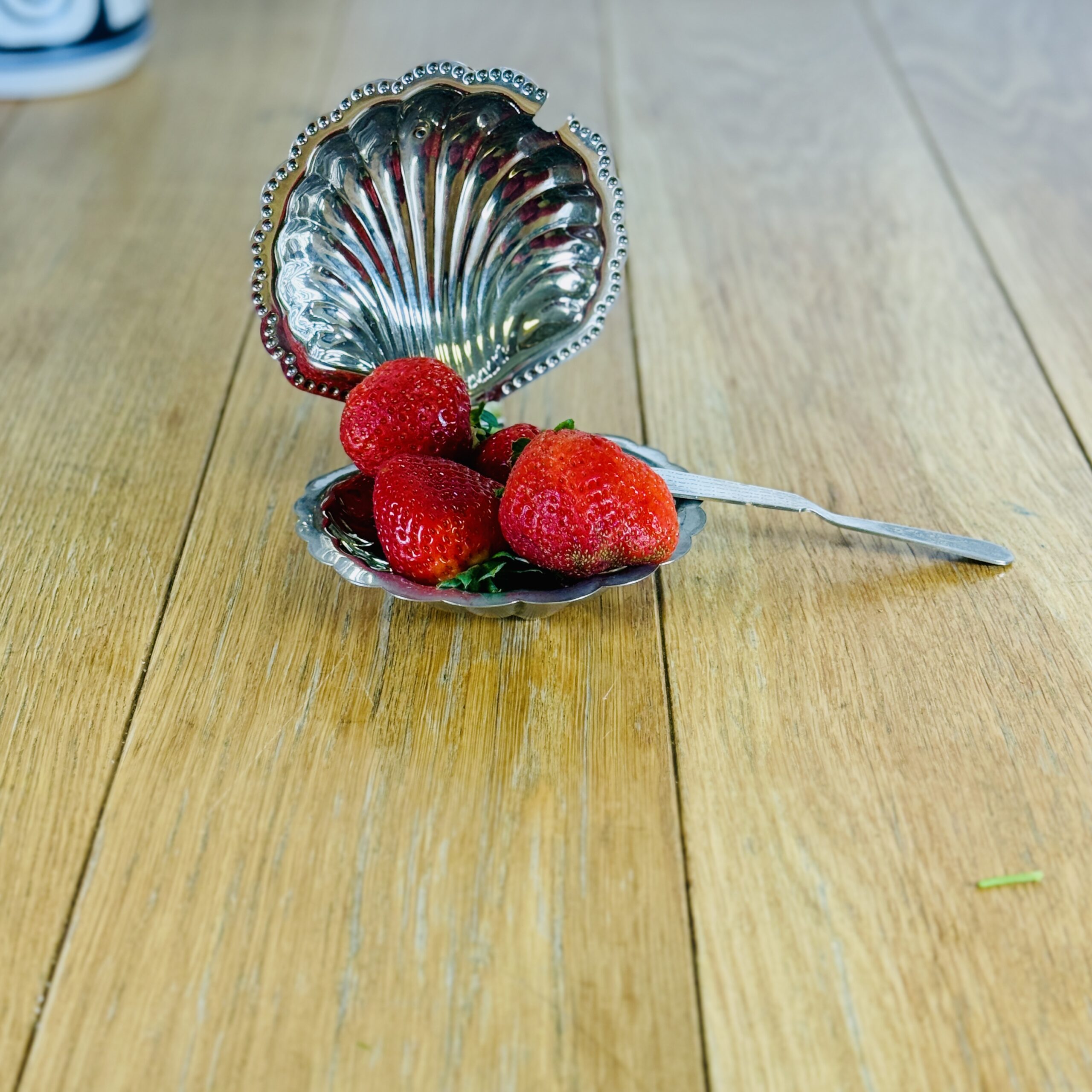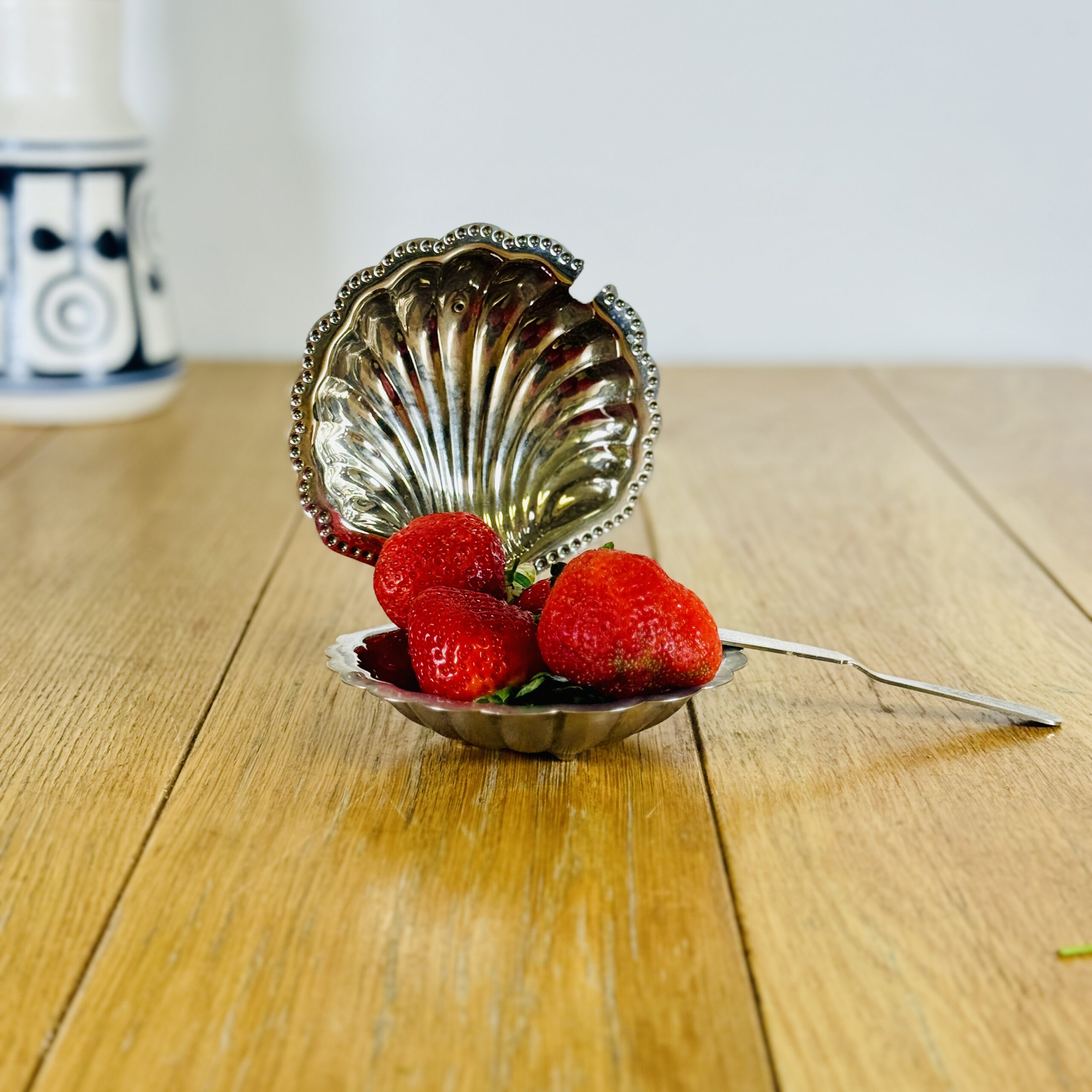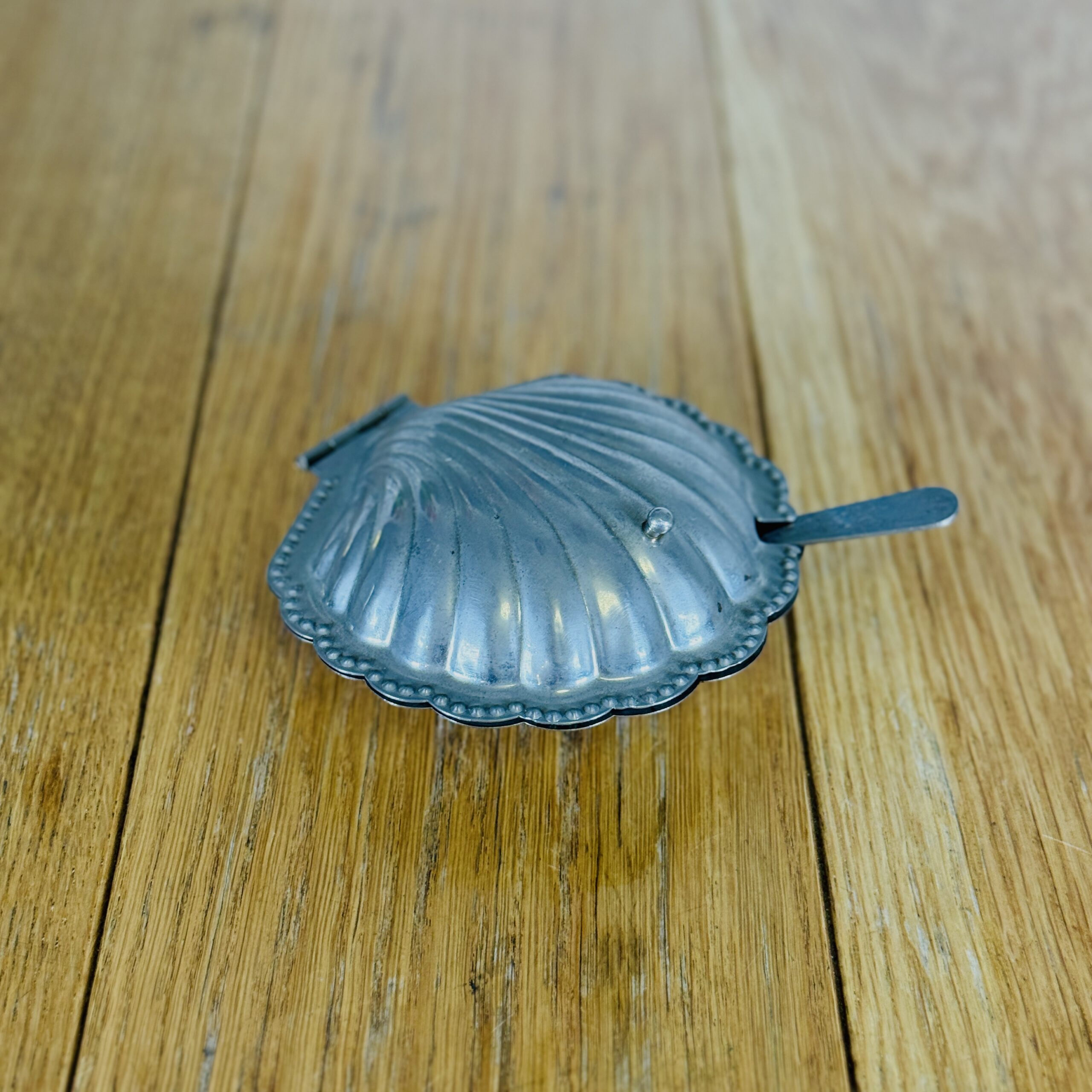 צדפה ממתכת עם סכין למריחה צדפה נפתחת ֿעם סכין ציפוי כסף ֿ מצב מאוד טוב