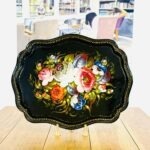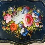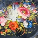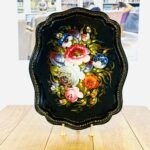 מגש מפח גדול וינטג׳ רוסי חתום ציור יד גדול מרשים ומצב מושלם מידות- 36 על 44