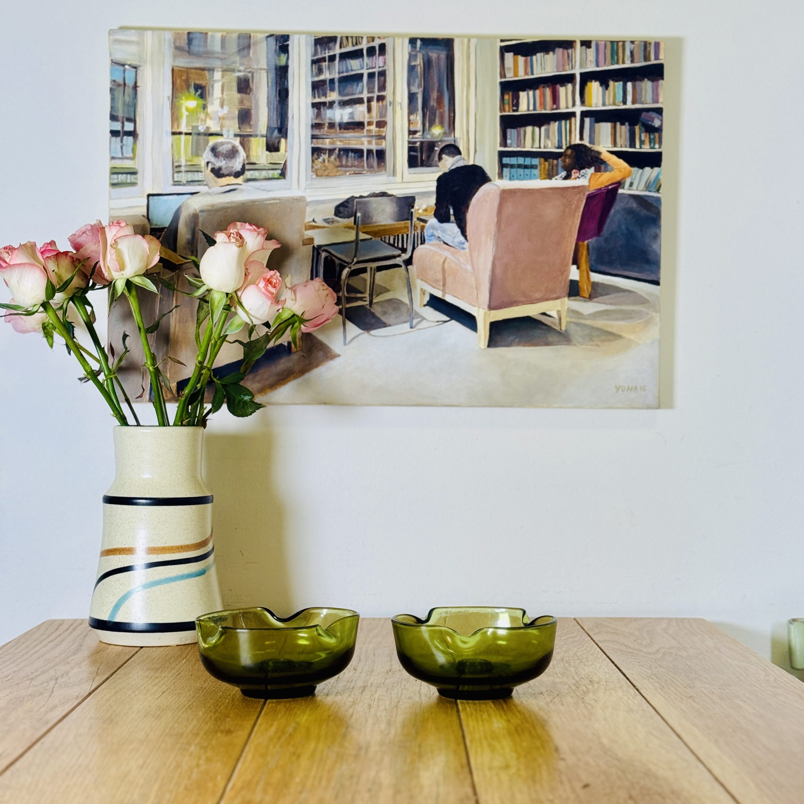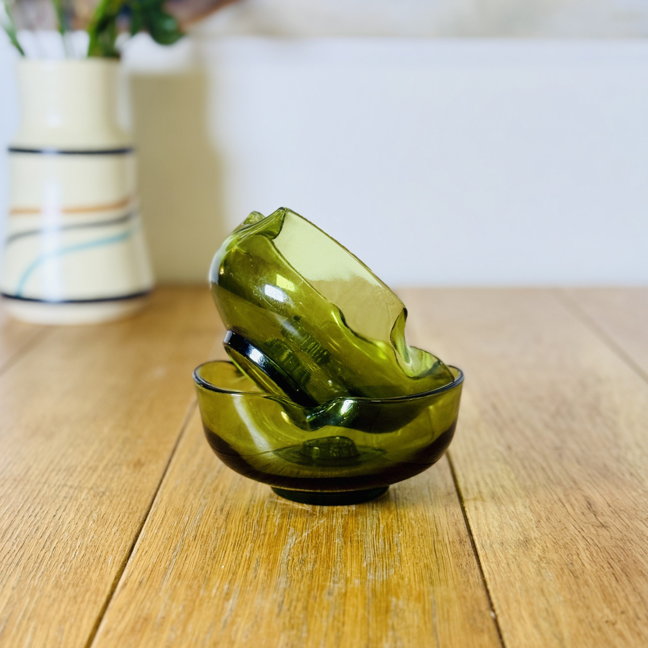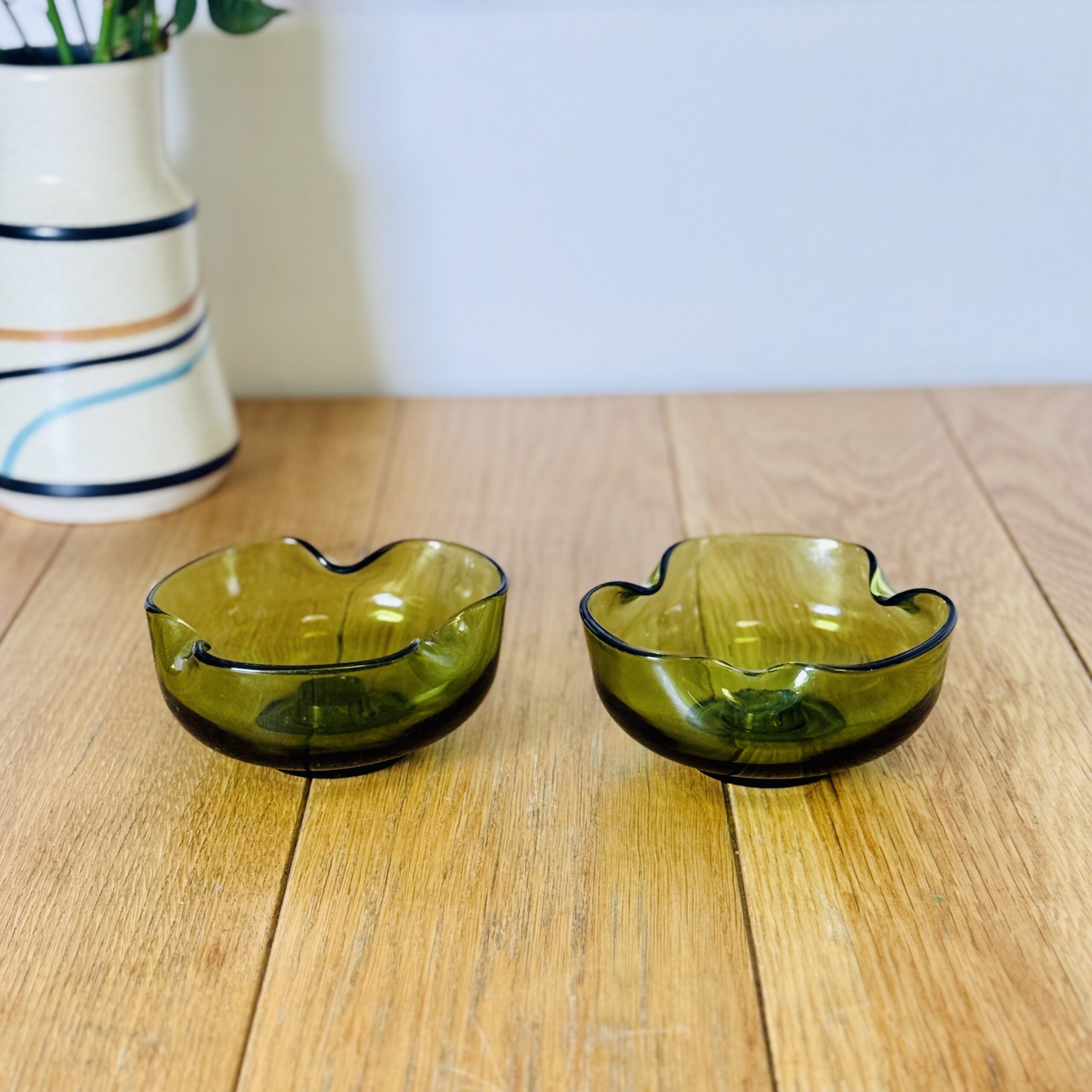 זוג פמוטים ירוקים וינטג׳ זכוכית ירוקה מיוחדים גובה 6 קוטר 13 מצב מושלם