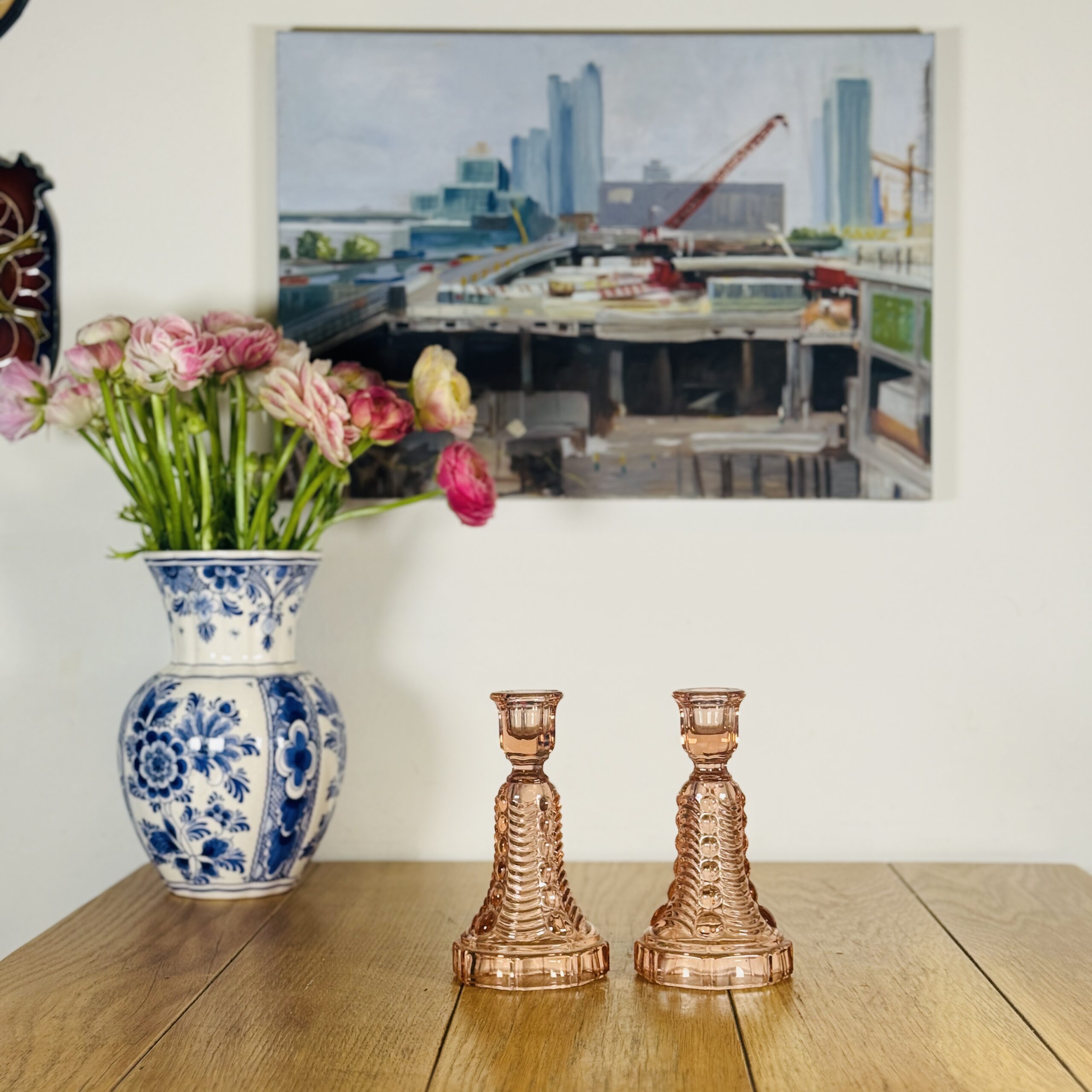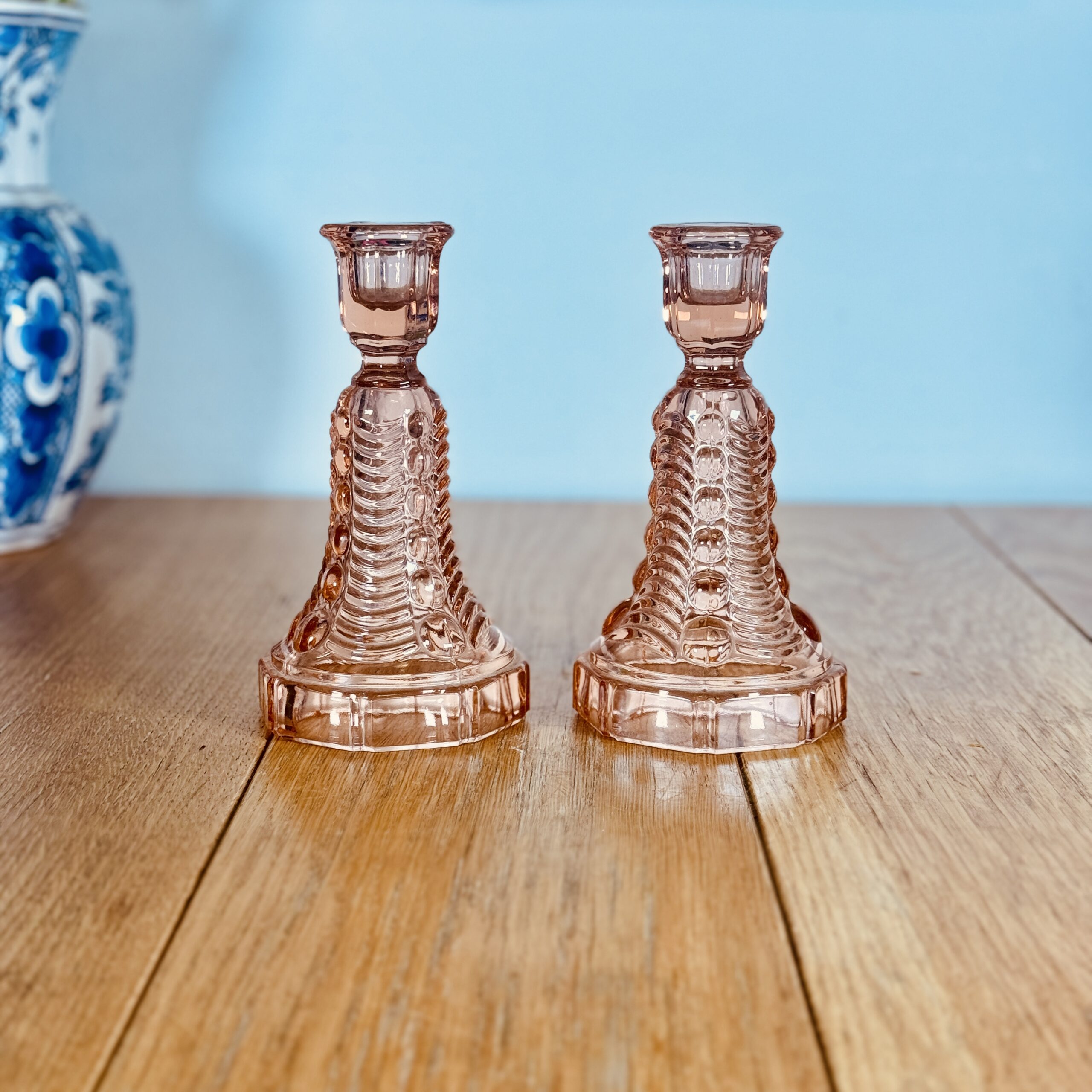 זוג פמוטים צרפתים זכוכית ורודה