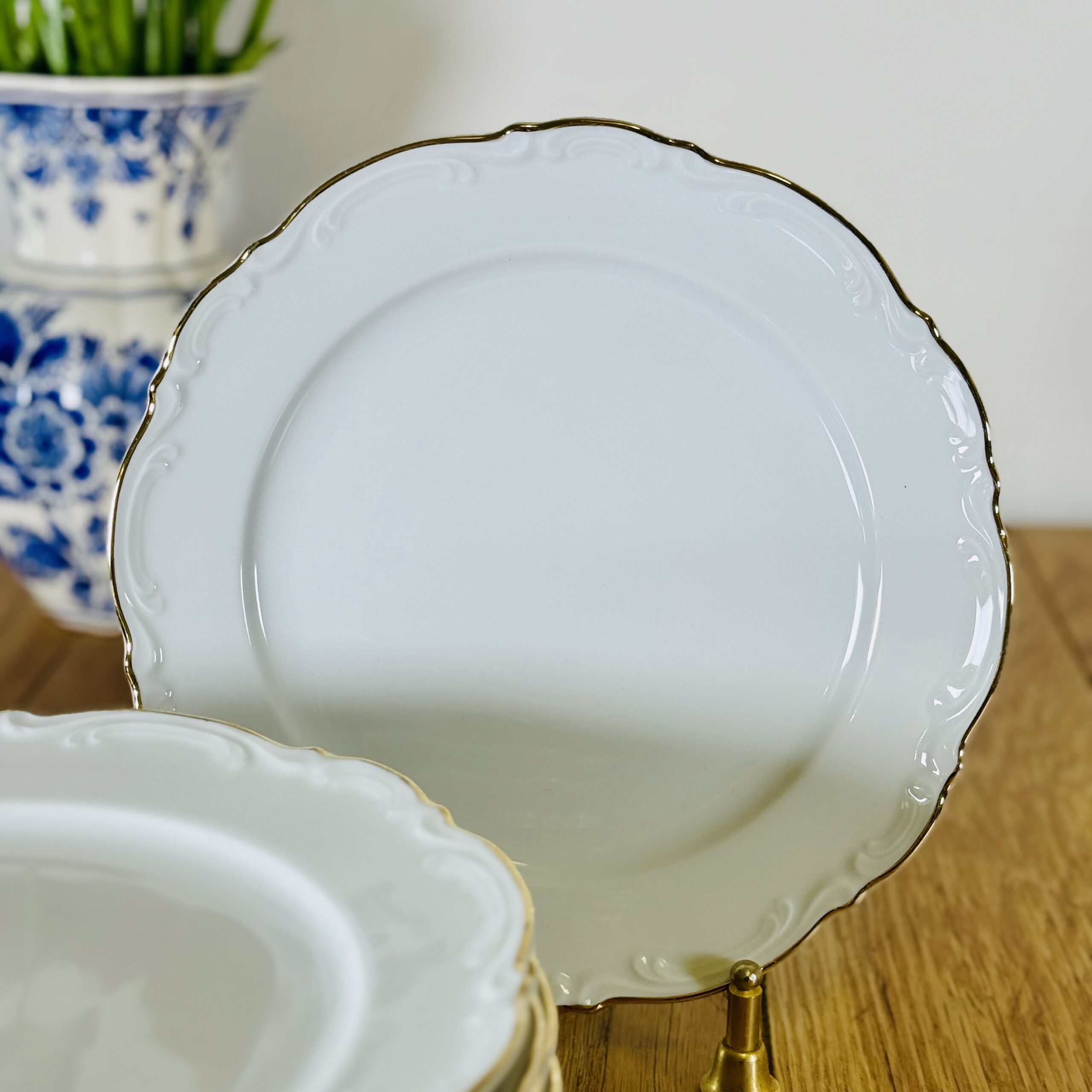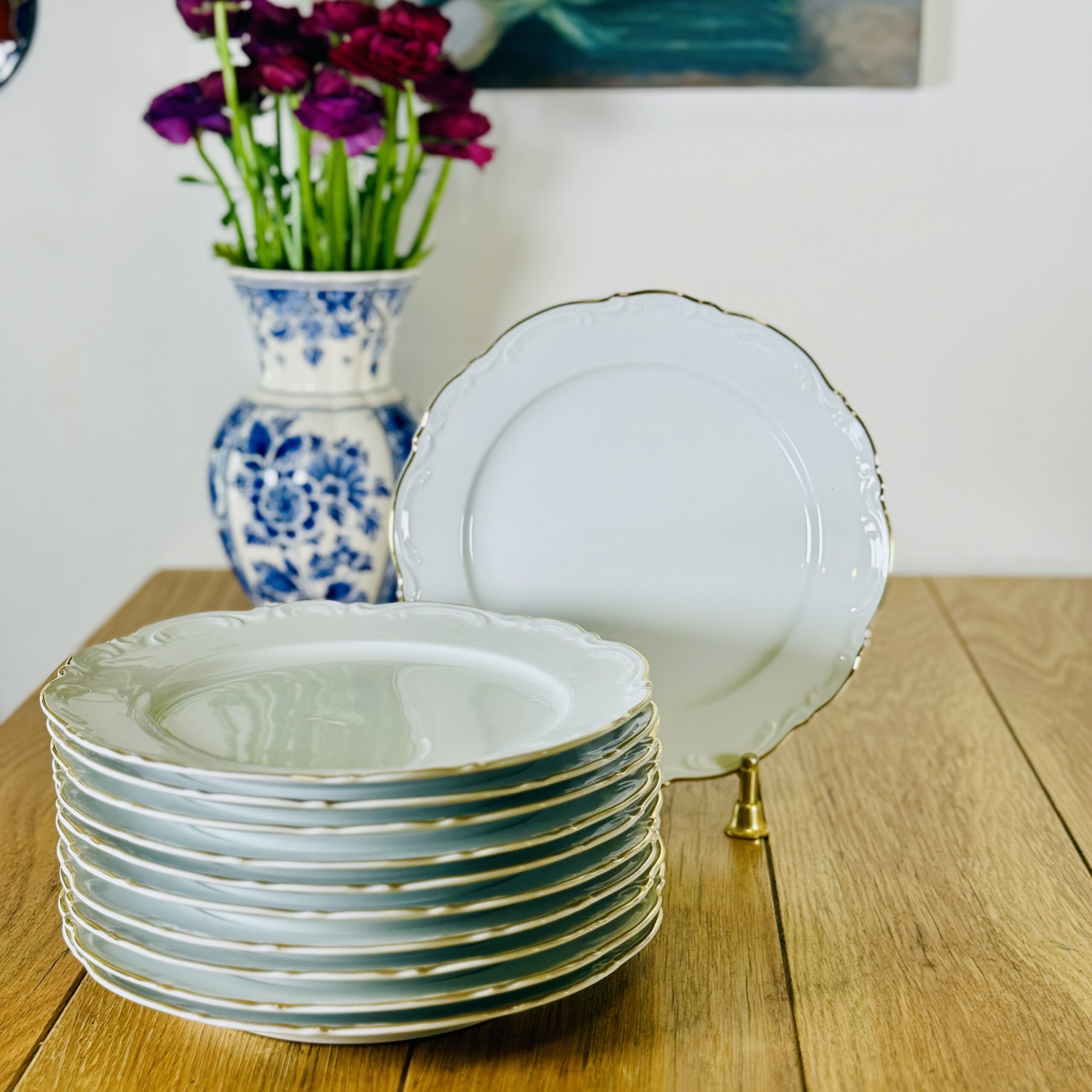 סט צלחות עיקריות וינטגי בבאריה לבנות קלאסיות איכותיות