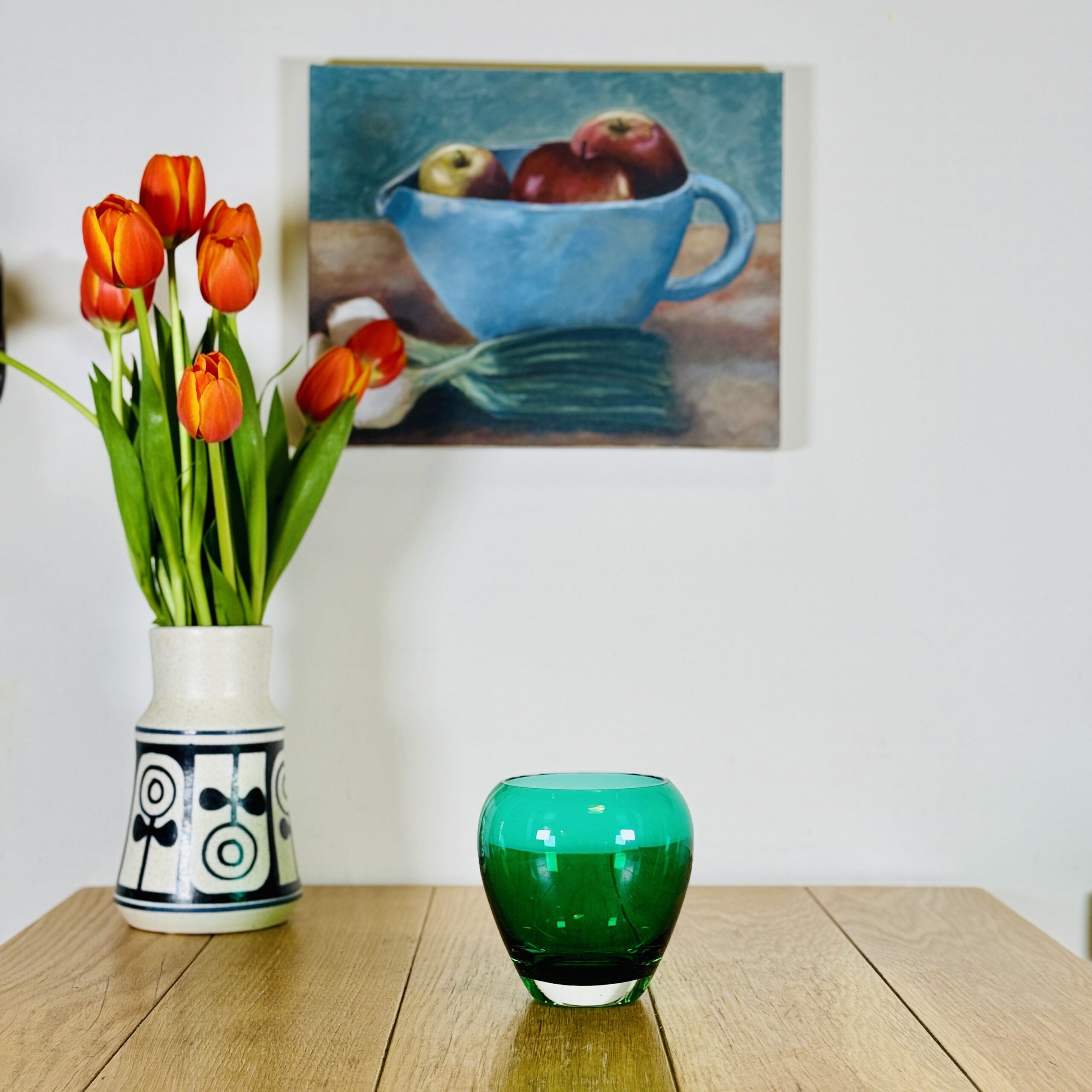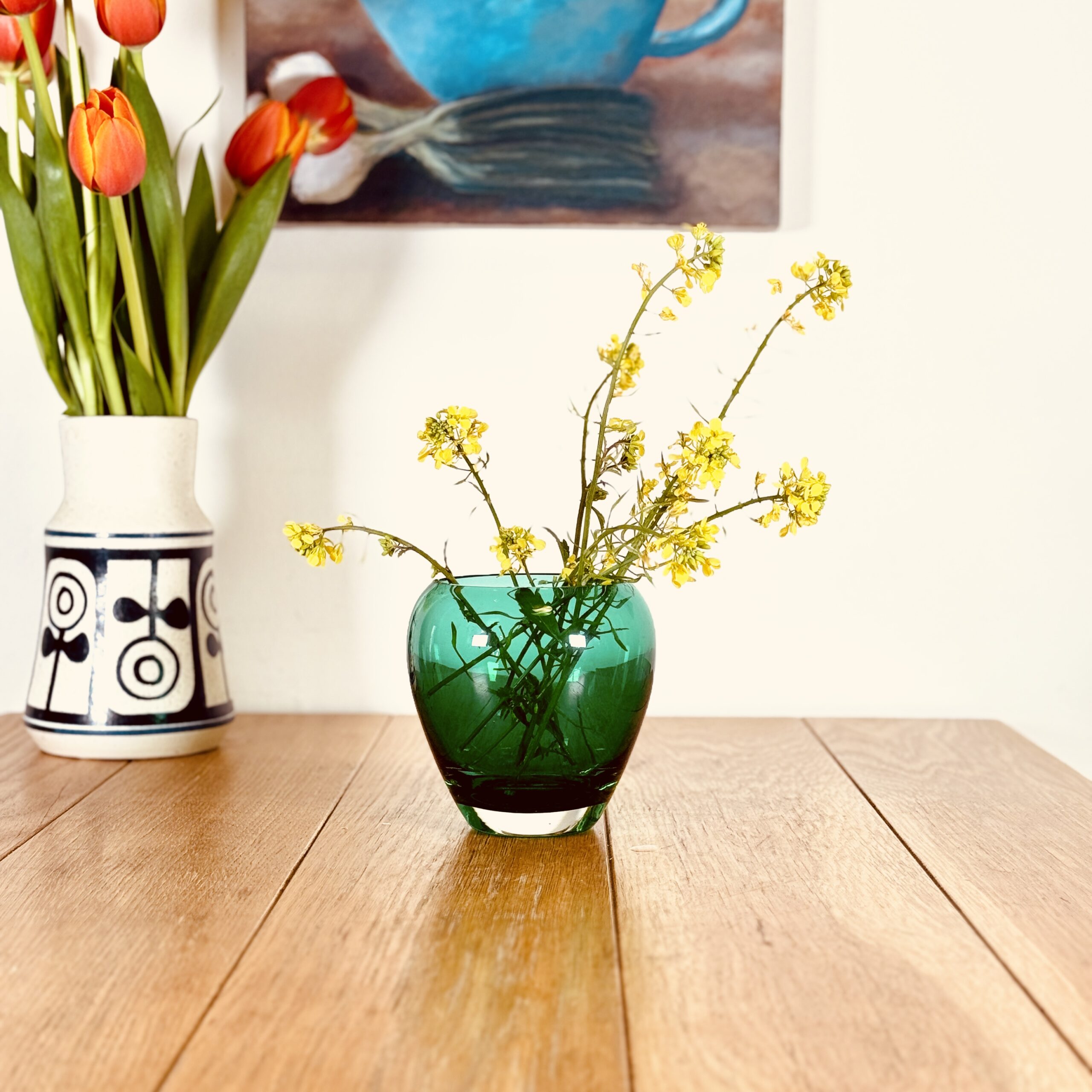 אגרטל זכוכית ירוק אמרלד מאוד מיוחד אגרטל סקנדינבי מצב מושלם מידות 14 על 10