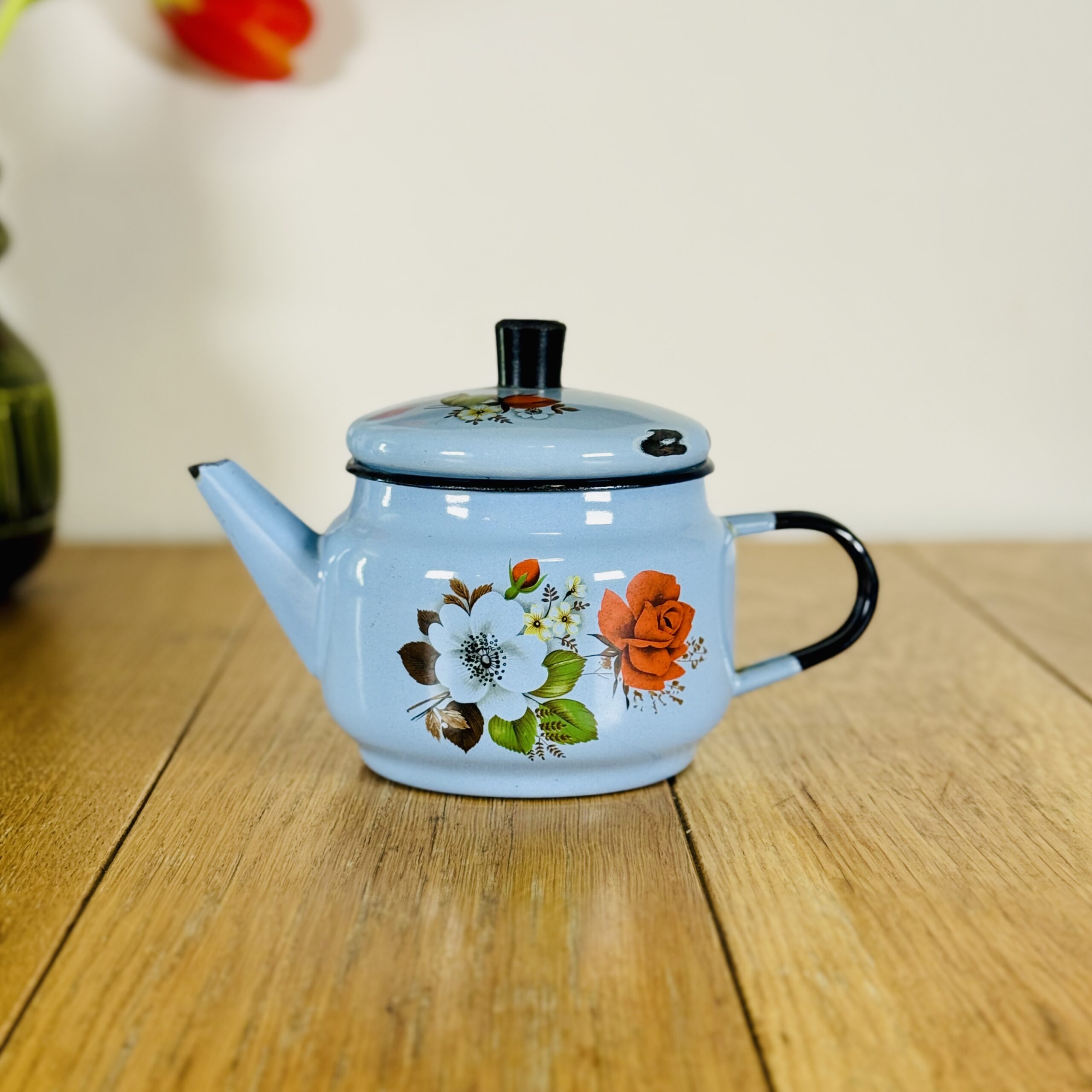 קומקום אמייל רוסי מצויר עם פגמי זמן קלים לדקורציה גובה 17 קוטר 11