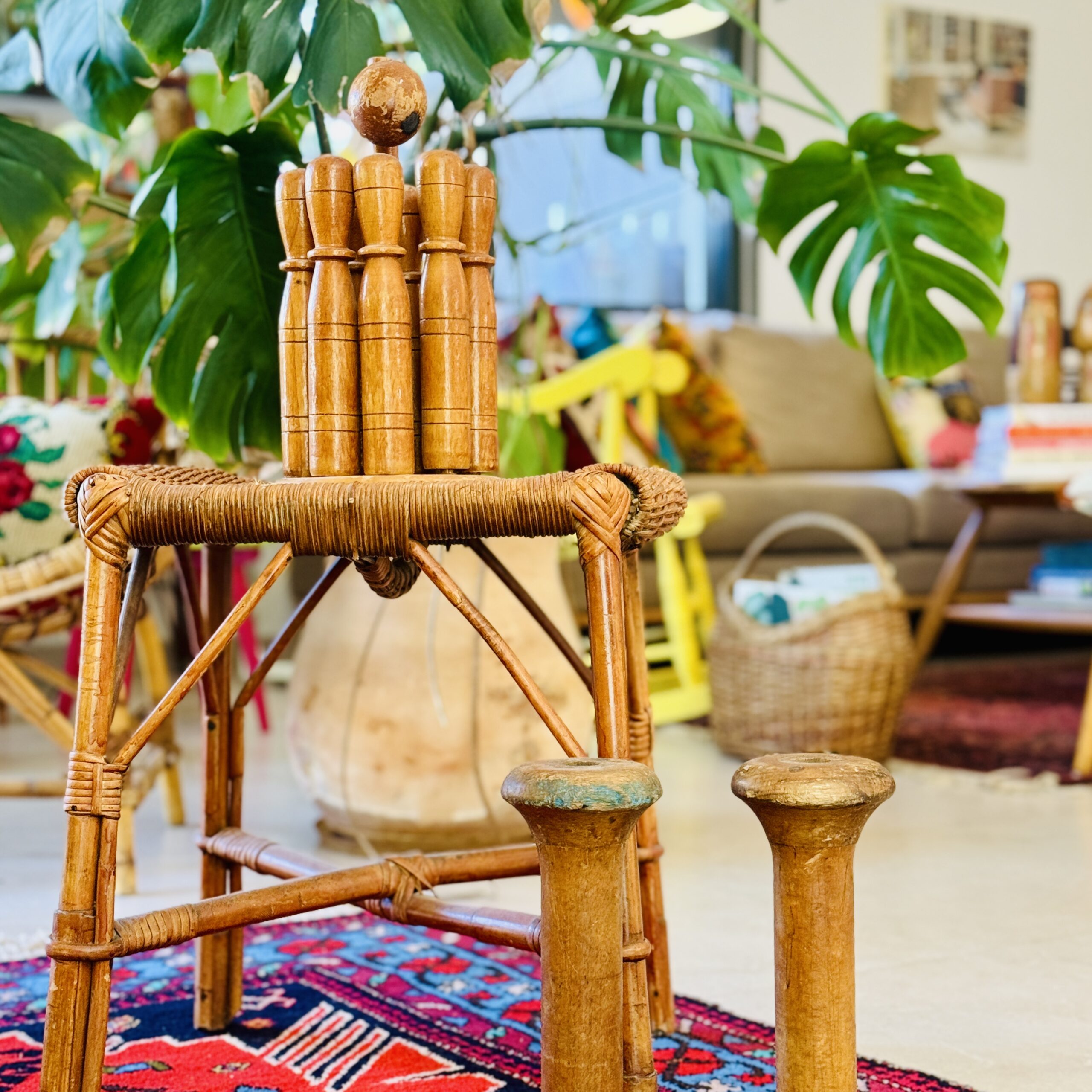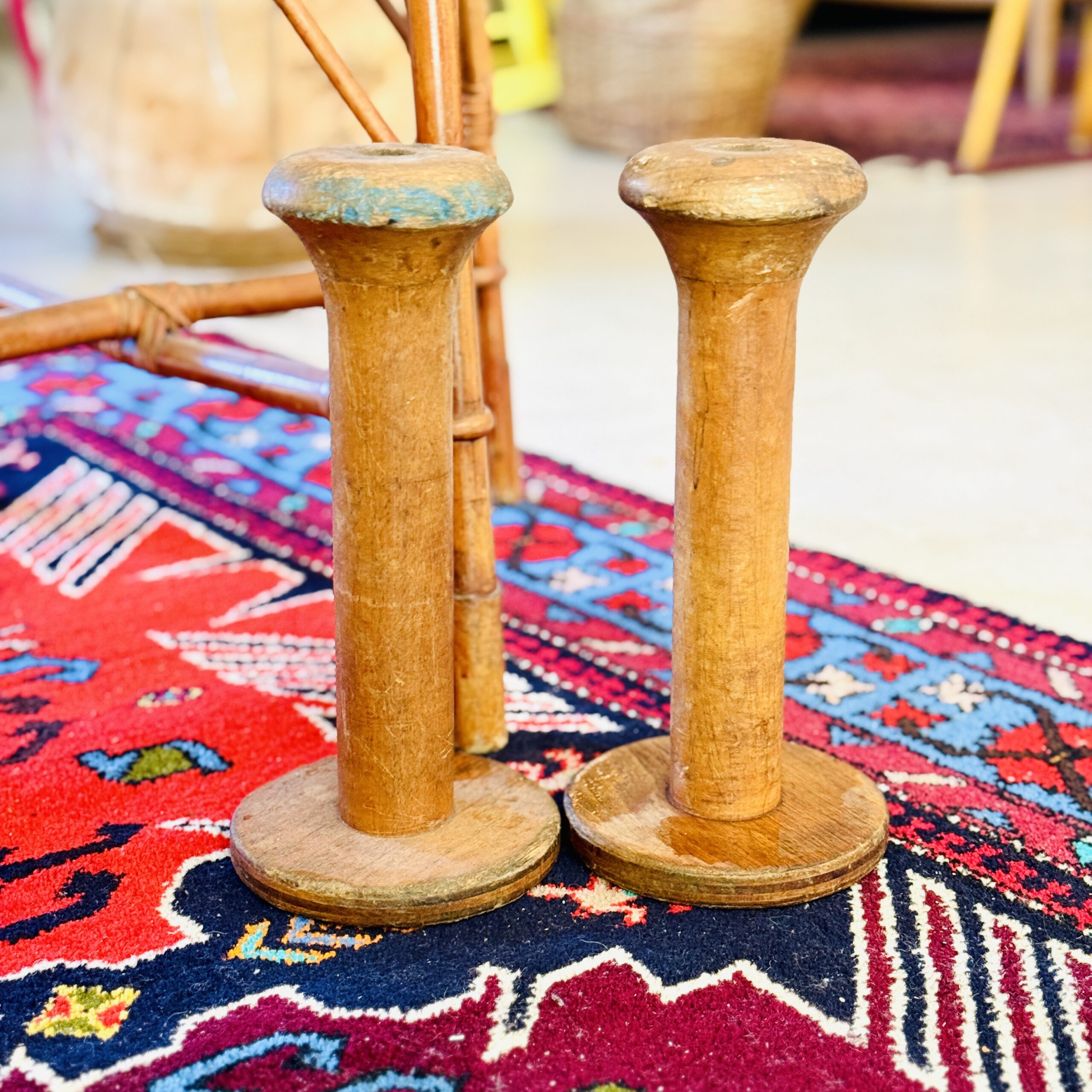 זוג מעץ סלילים גדולים וינטג׳ גובה 27-28 סמ מתאימים לדקורציה ויופי ניתן לשלב עם צמחיה נמכרים כזוג