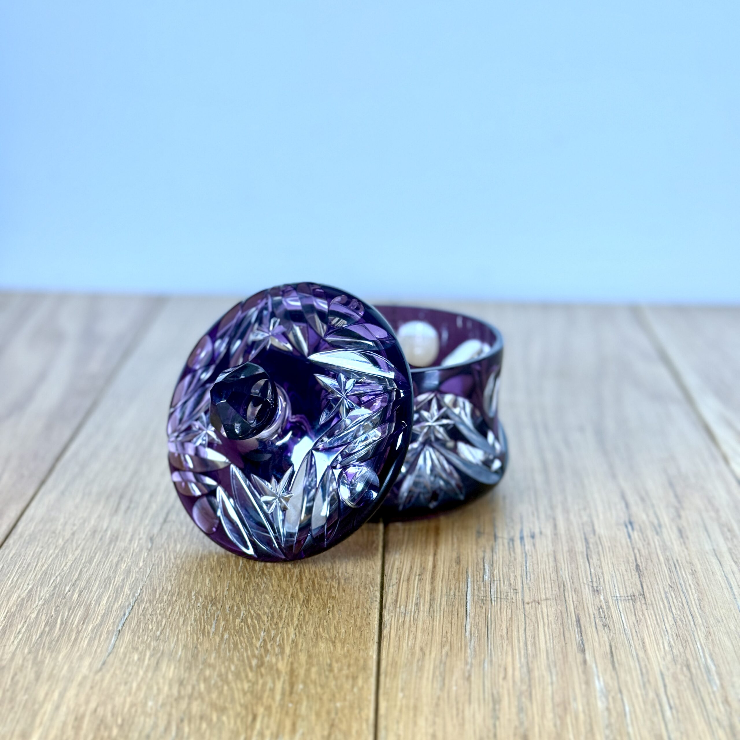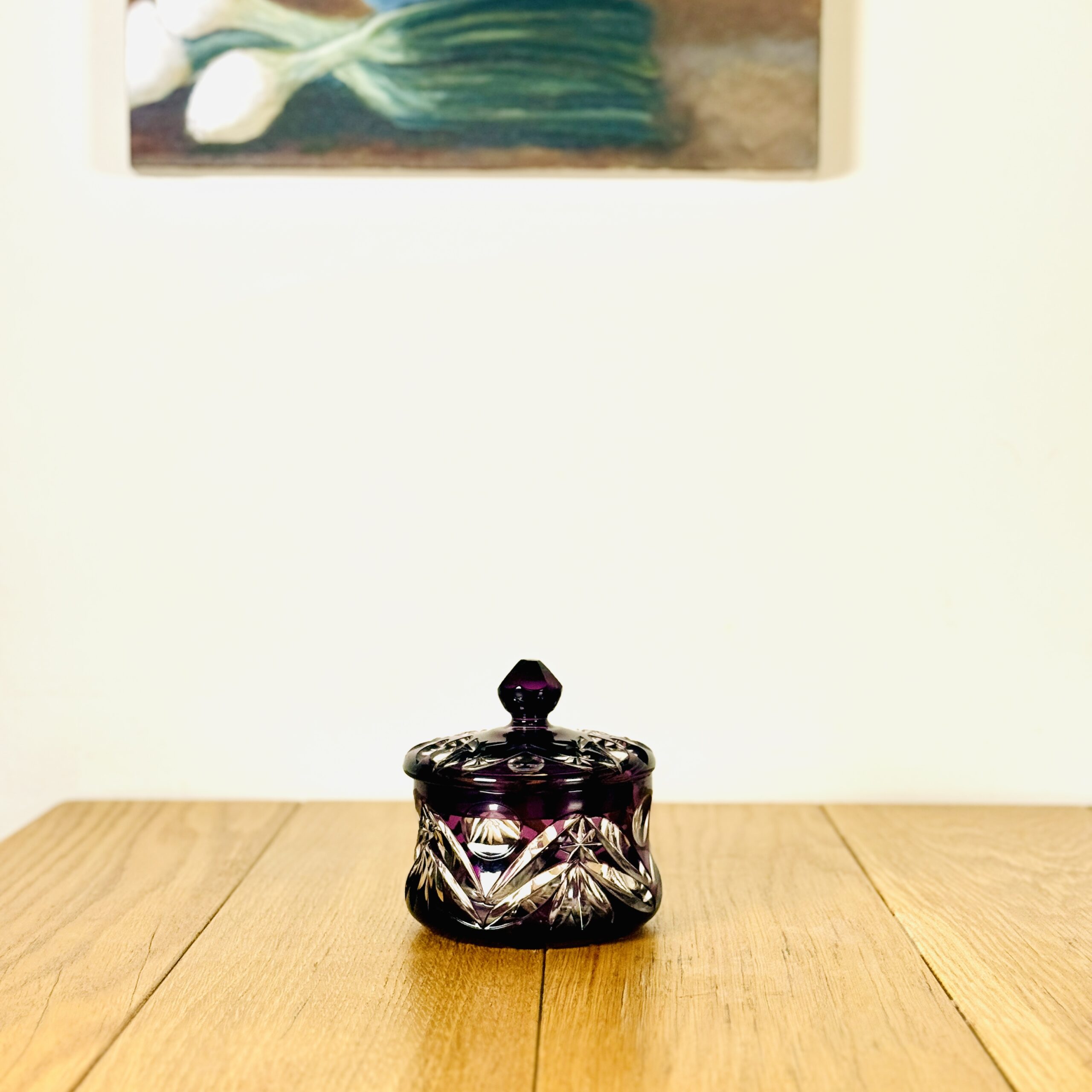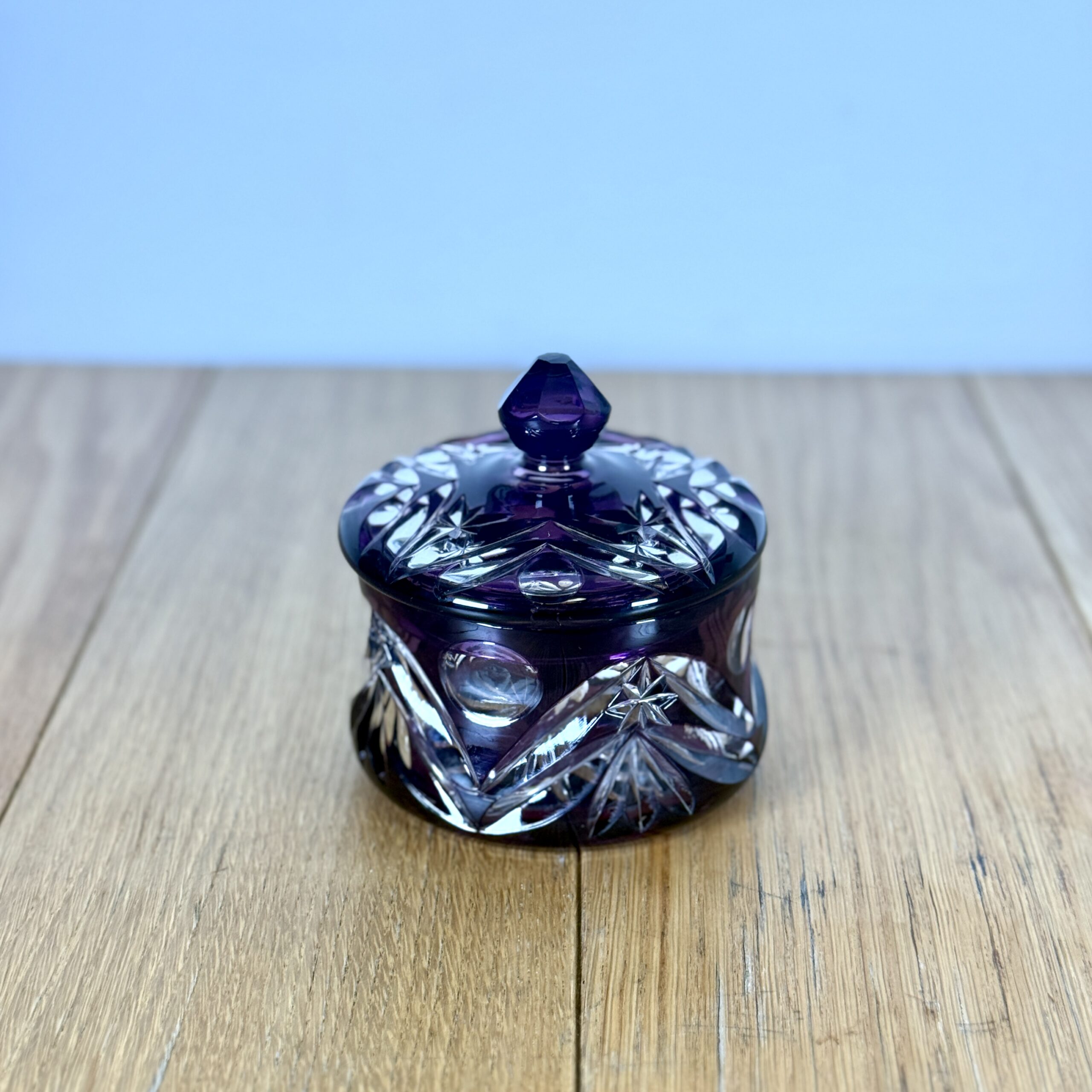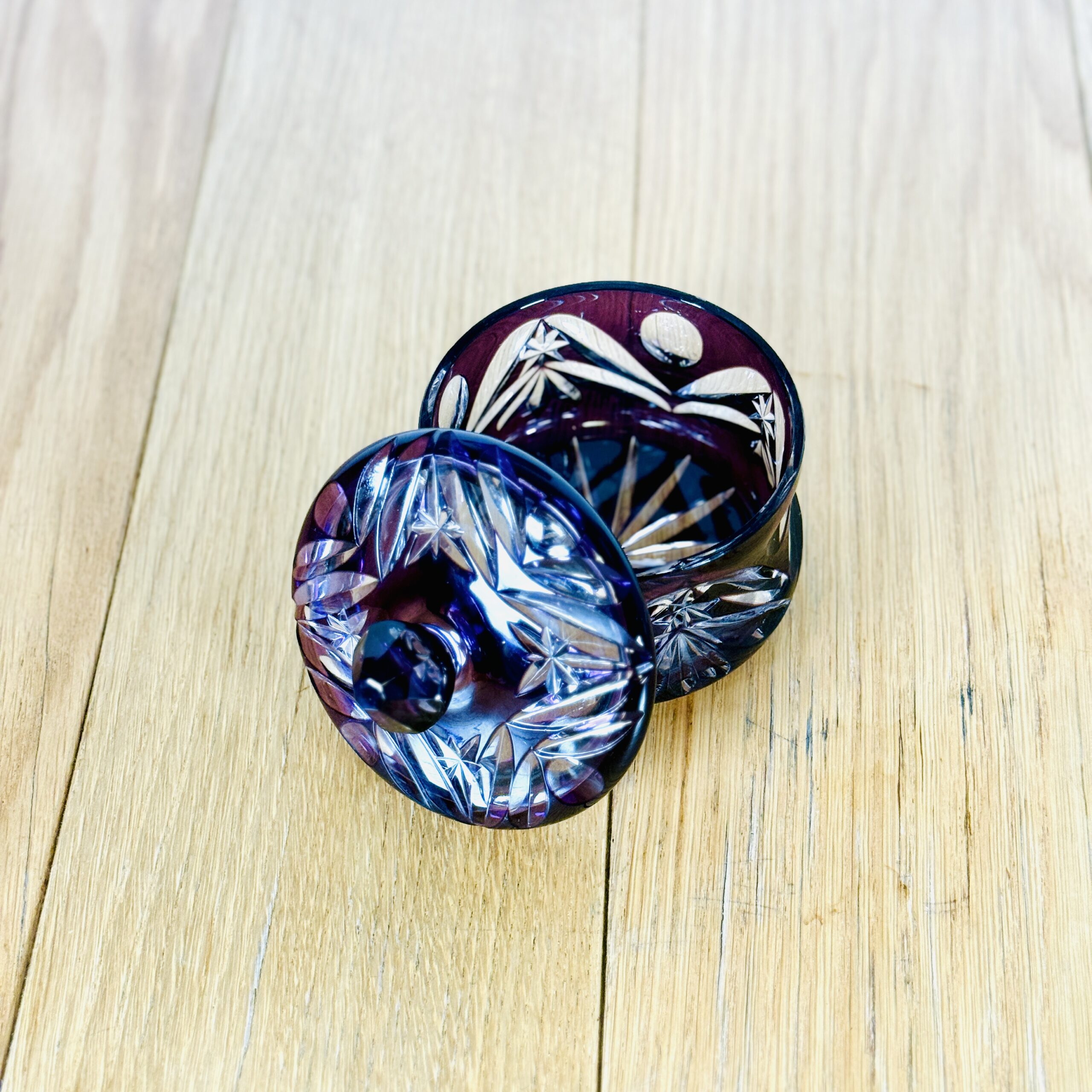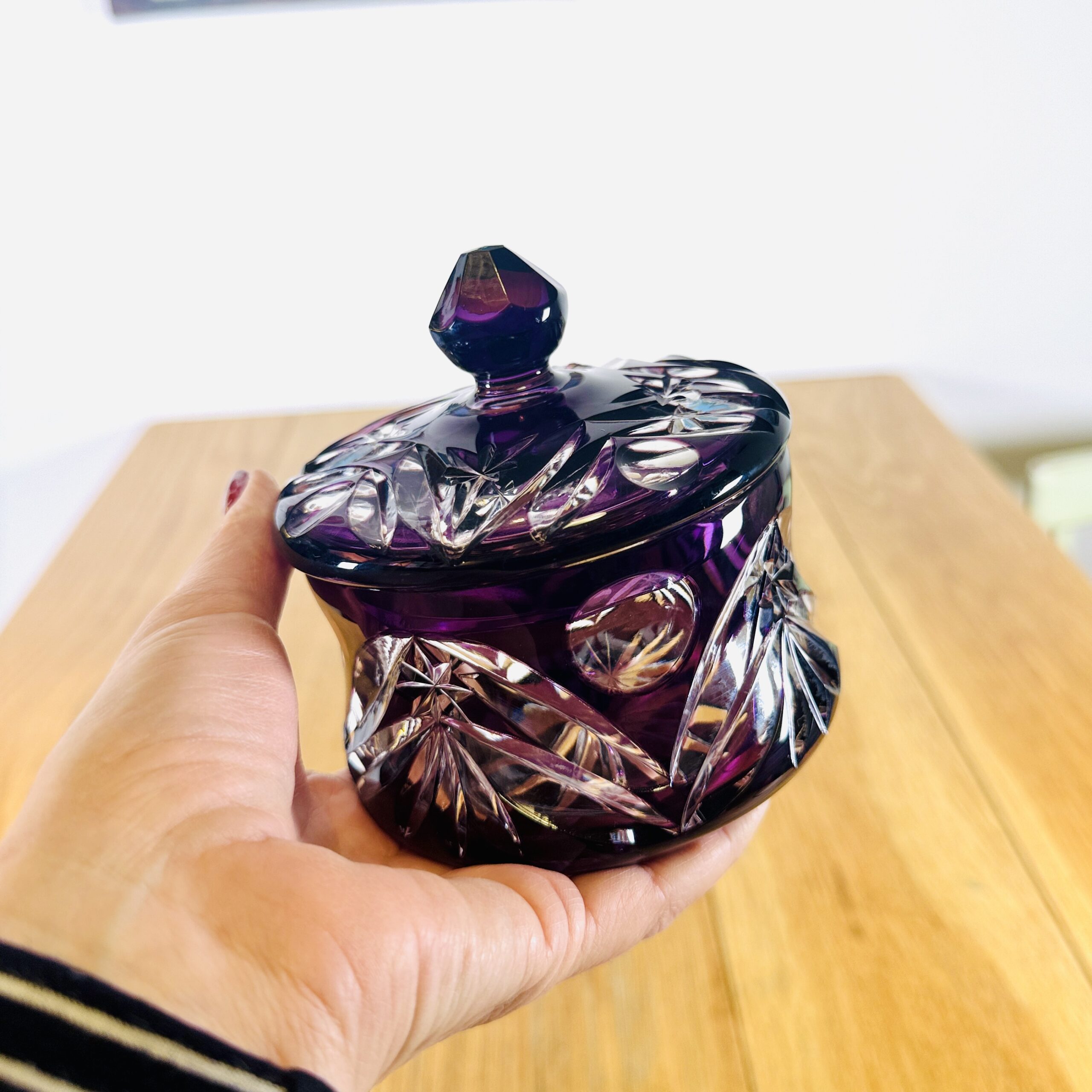 קופסת  קריסטל וינטאגי ציכי צבע סגול מצב מושלם מרשימה מידות -גובה 14, קוטר 11